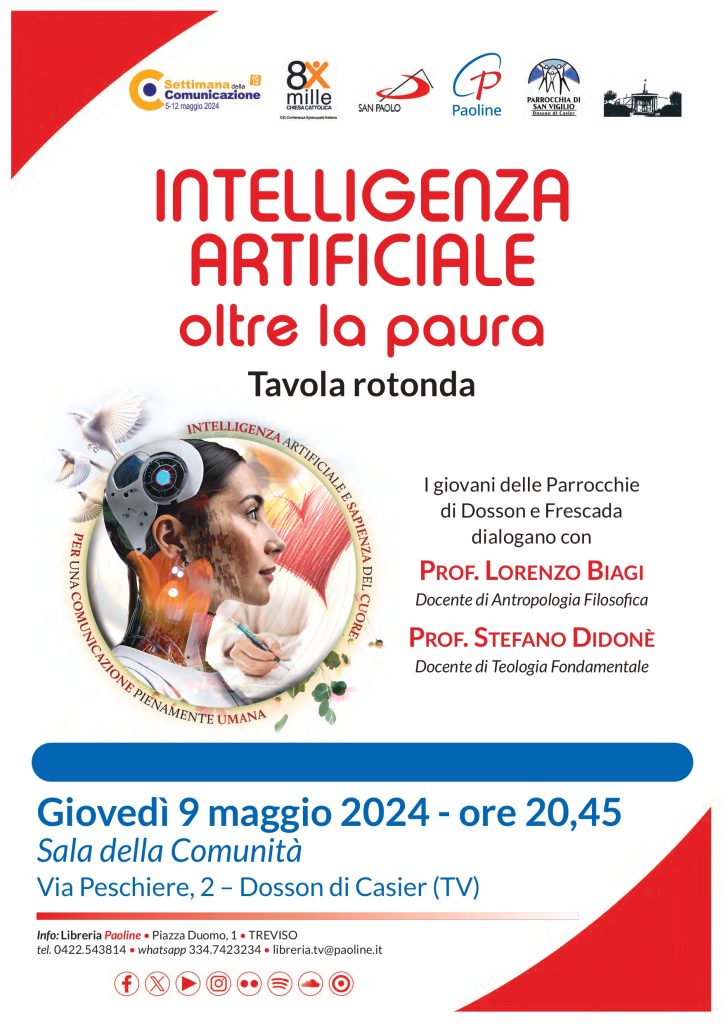 I giovani delle parrocchie di Dosson e Frescada, il 9 maggio, dialogheranno con il professore Lorenzo Biagi e con il professor Stefano Didonè sulle opportunità dell’Intelligenza Artificiale.