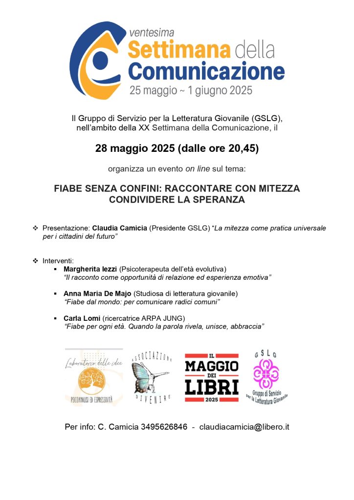 Il Gruppo di Servizio per la Letteratura Giovanile (GSLG) organizza un incontro on line, con vari interventi, per raccontare con mitezza e condividere la speranza: tema della 59° Giornata Mondiale