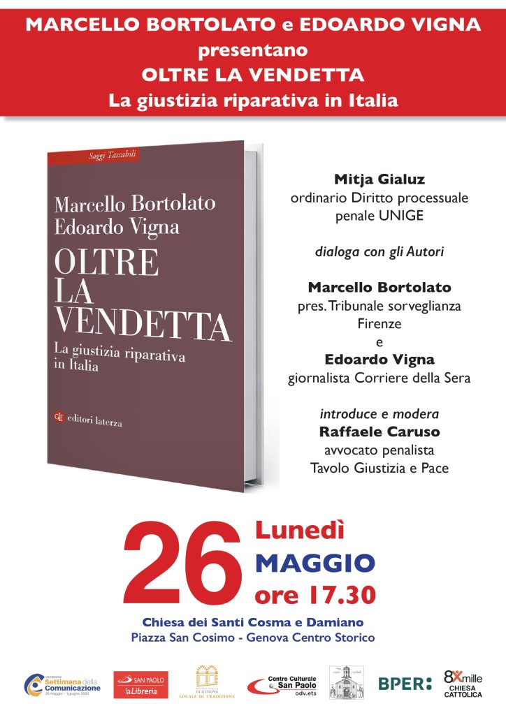 26Mag17:3018:30LA GIUSTIZIA RIPARATIVAGenova. Presentazione del libro "Oltre la vendetta"